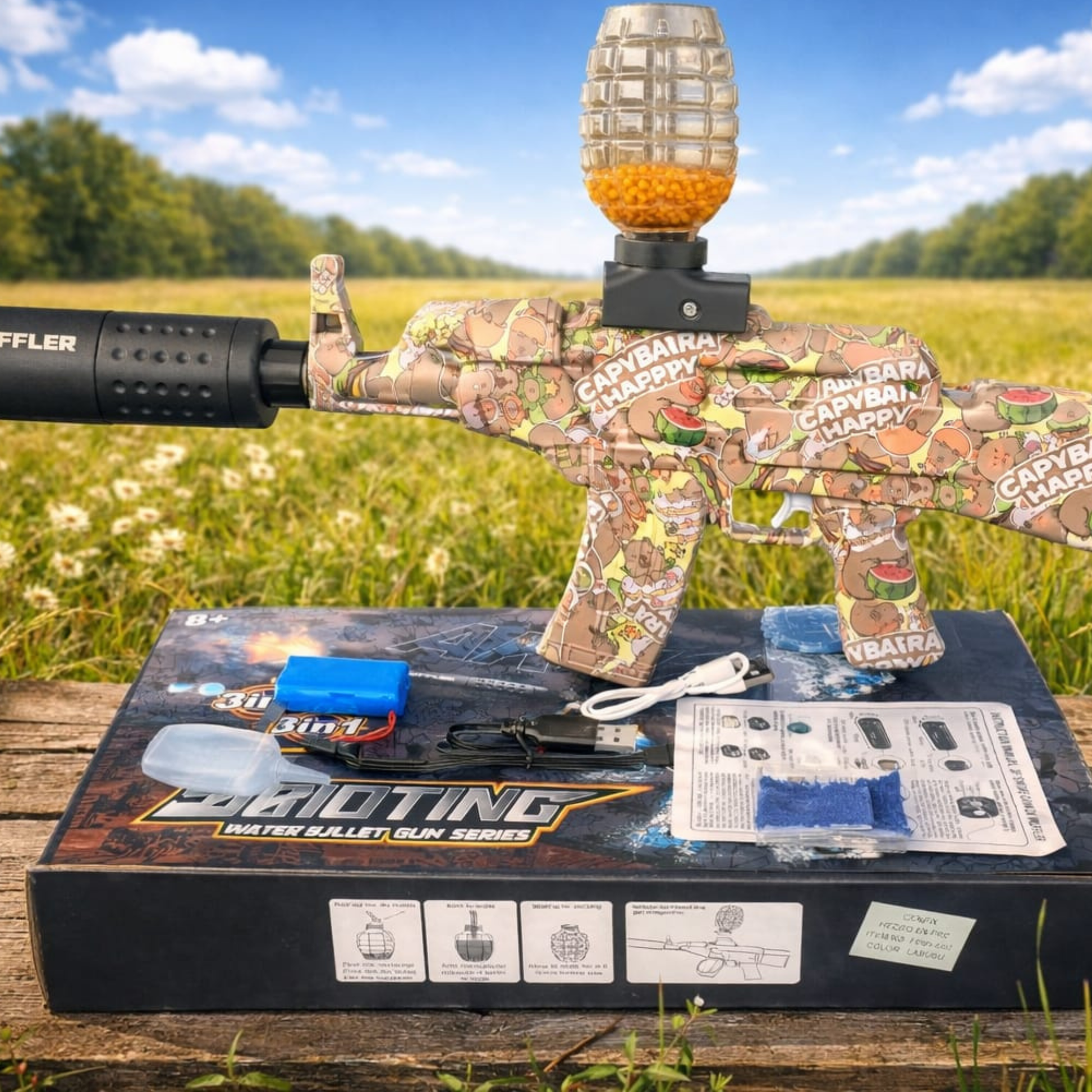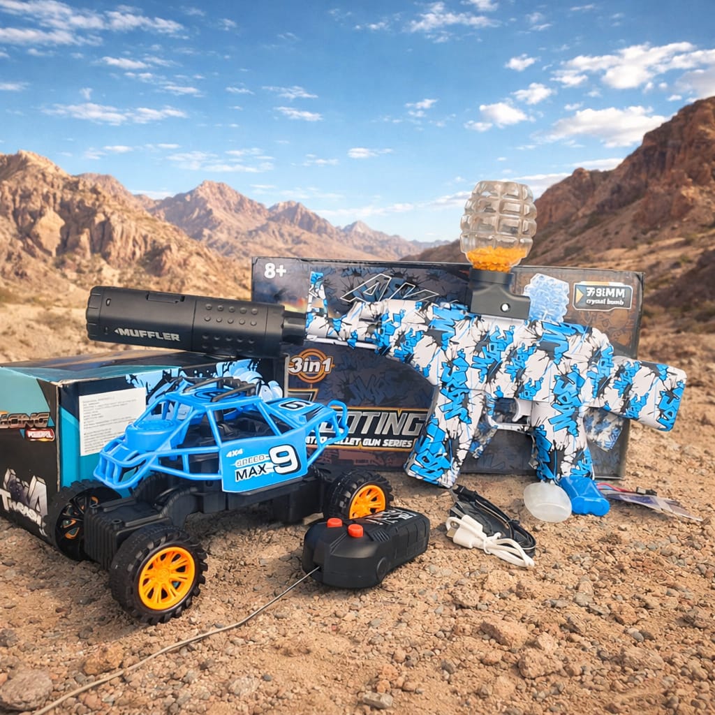 Pistola Hidrogel Ak47 3en1 Bota Humo con Silenciador + Carro Control Todo Terreno - “Stock limitado”